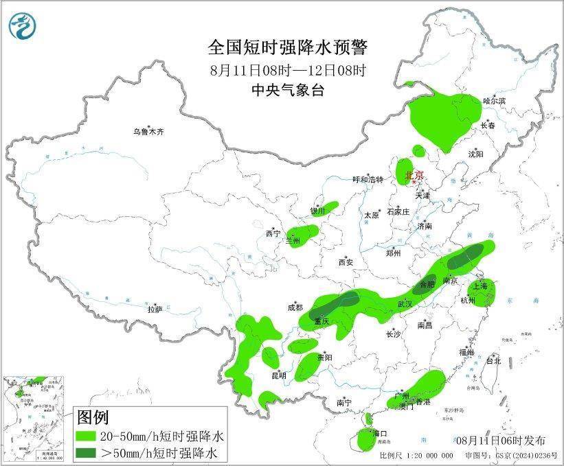 8月11日6时富农优配APP,中央气象台继续发布暴雨黄色和强对流天气蓝色预警: